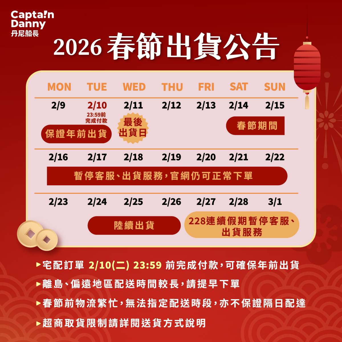 最後出貨日: 2/11 (週三)