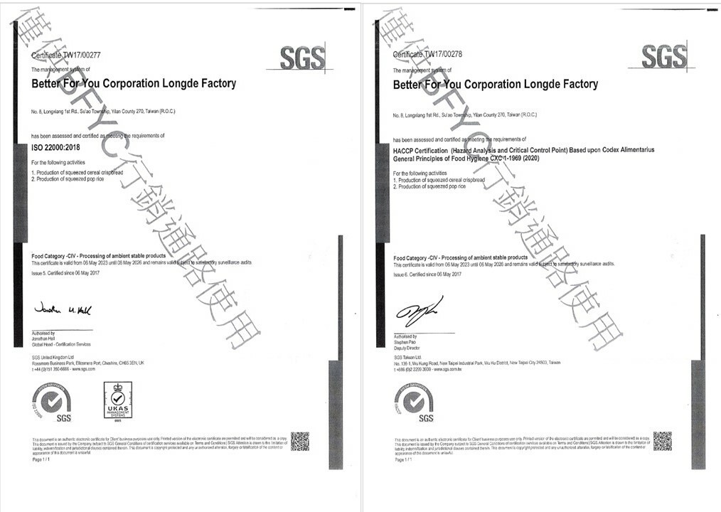 工廠及產品通過ISO22000&HACCP食品安全系統驗證,讓您美味更安心。