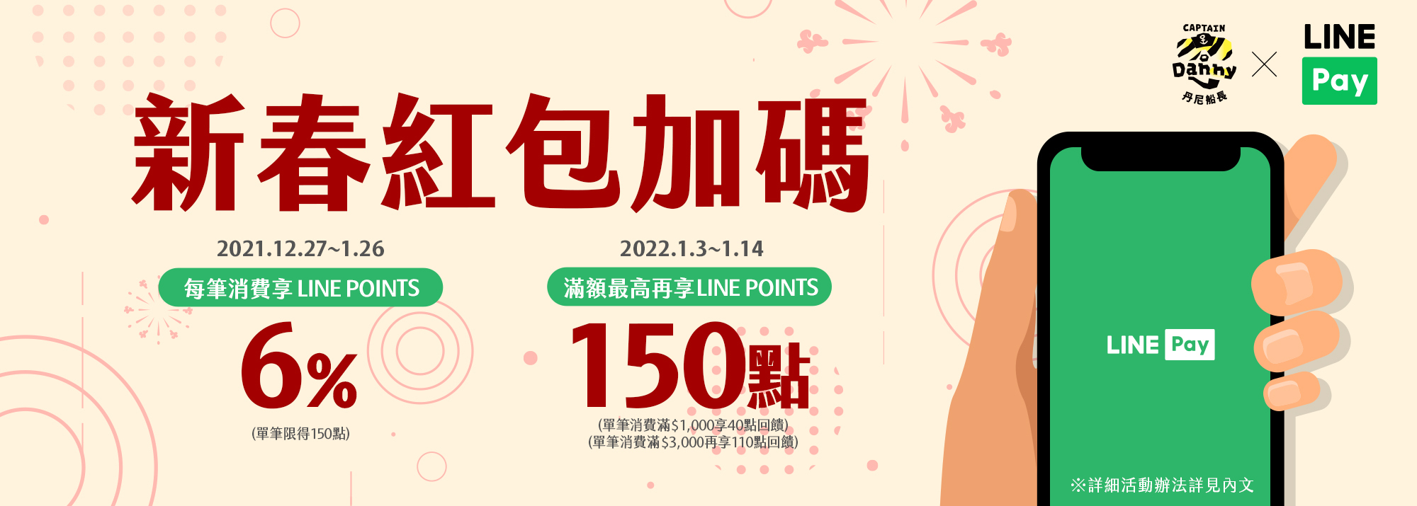 用LINE Pay付款,筆筆享6%回饋!1/3-1/14滿額再享最高150點回饋