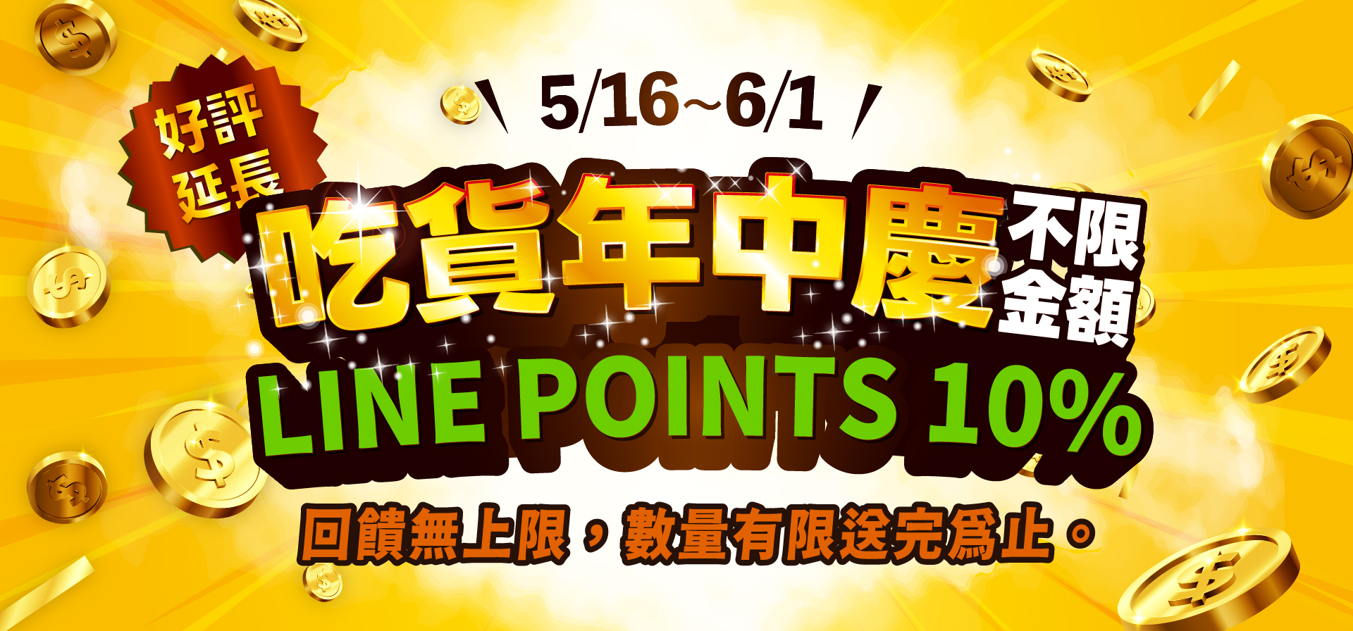 好評加碼到06/01!LINE Pay付款享LINE POINTS 10%回饋無上限!