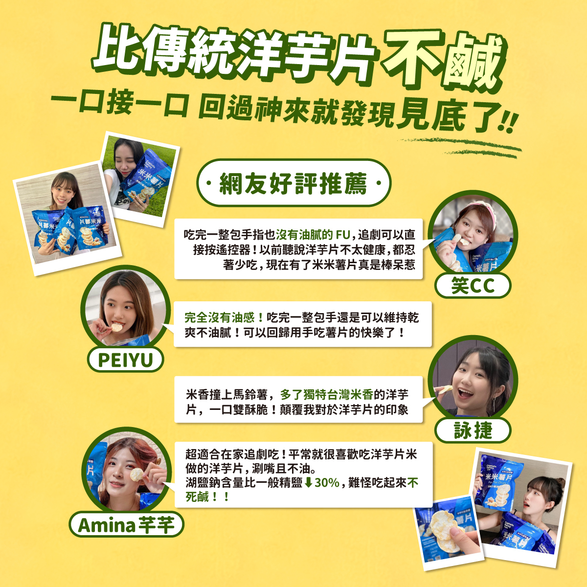 非油炸米米薯片 經典日曬湖鹽味 (全素) 120g/包 三包